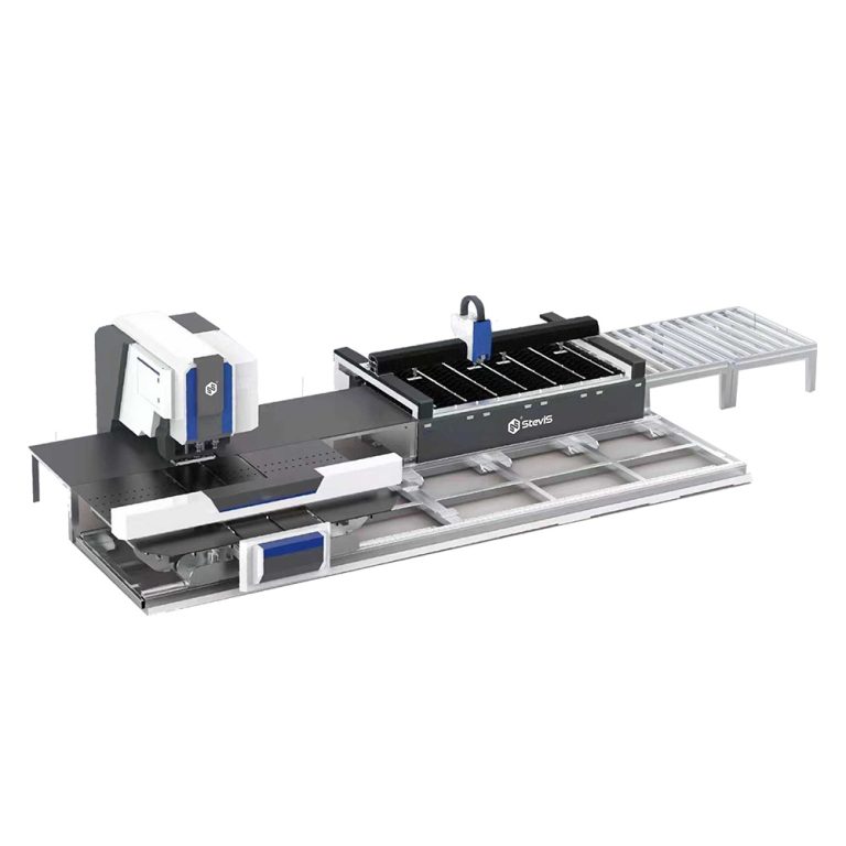 Автоматизирана производствена линия за щанцоване на стоманени плочи и рязане с фибро лазер